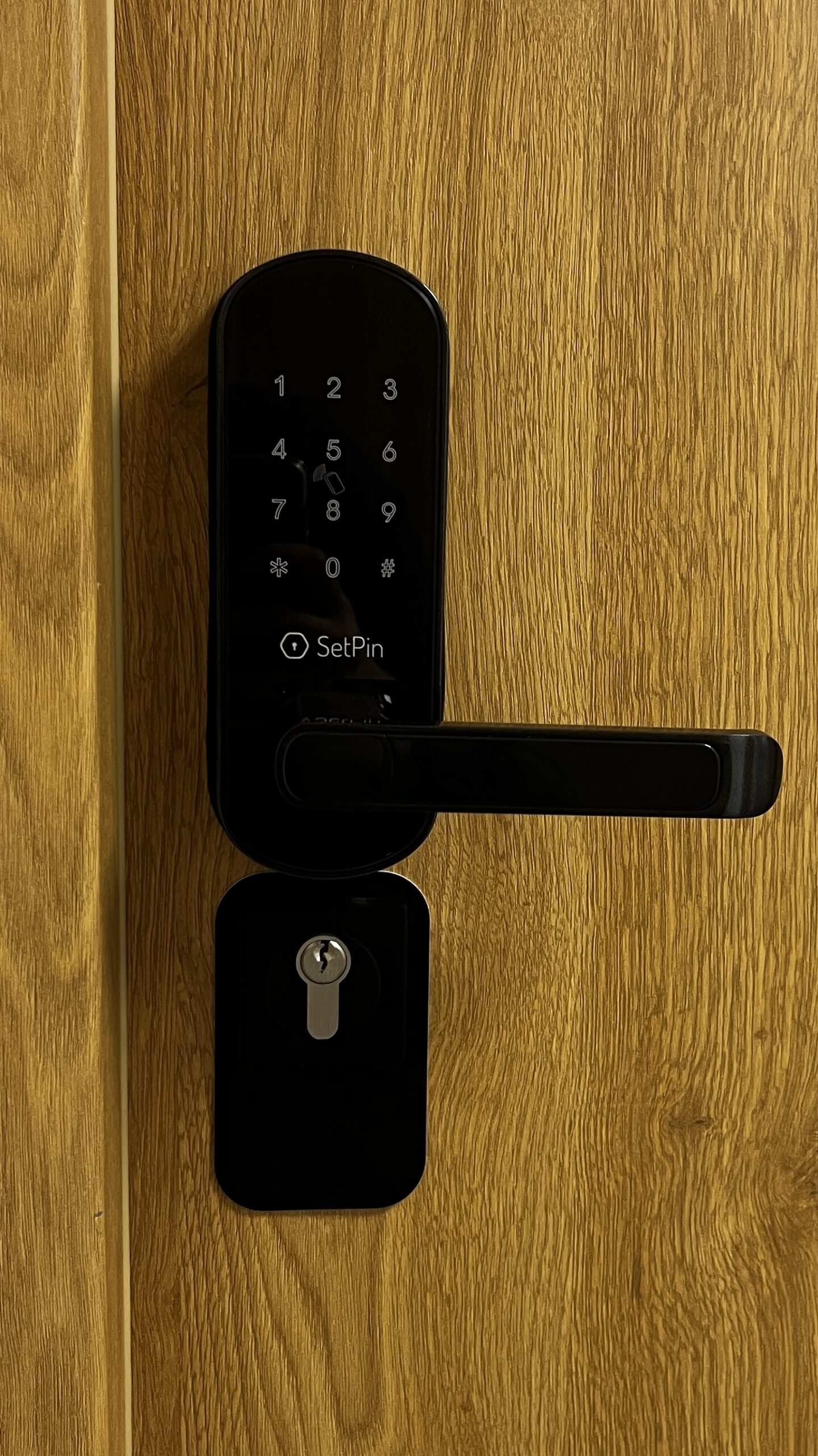 Určený pre dvere, u ktorých sa má existujúce kovanie odstrániť a nahradiť ho zámkom SetPin Standard SP-M21. Kryt zakrýva otvory na demontáž.